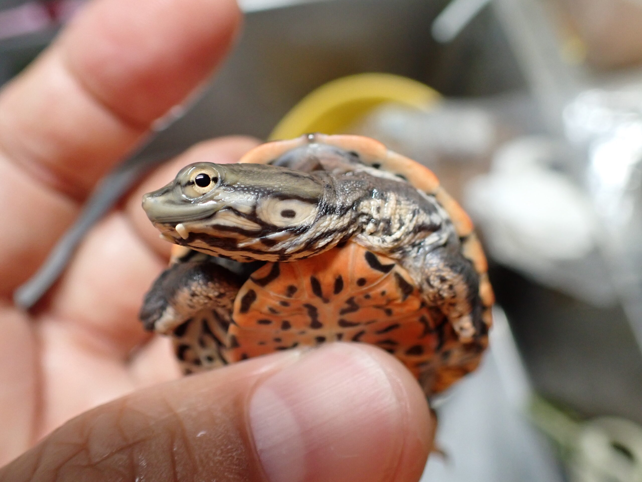 遊泳性が強く活発に泳ぐので広い水槽で泳がせて飼うのがオススメ。餌も人工飼料をよく食べていますし丈夫なカメなので、スペースさえ確保できればとても飼いやすいカメです。ある程度のサイズになったら大型魚と混泳させて飼育してみるのも良いですね!今回大特価なのでぜひどうぞ!