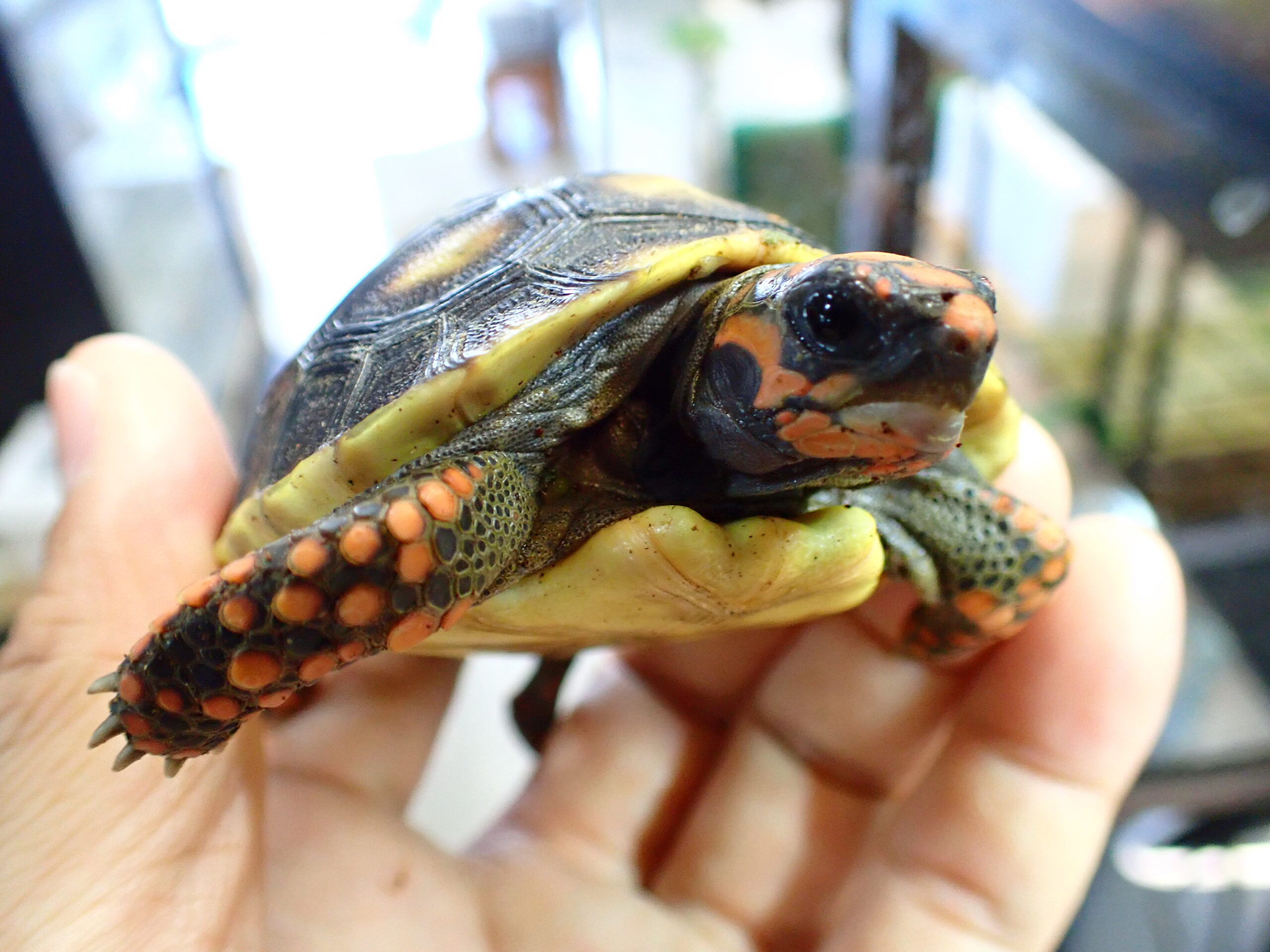 バルバドス産の個体群は大きくなるらしく、バルバドスジャイアントアカアシガメという名前で入荷しています。頭や脚の発色がとてもキレイな個体をセレクトしてあります。キレイな個体でオススメです!