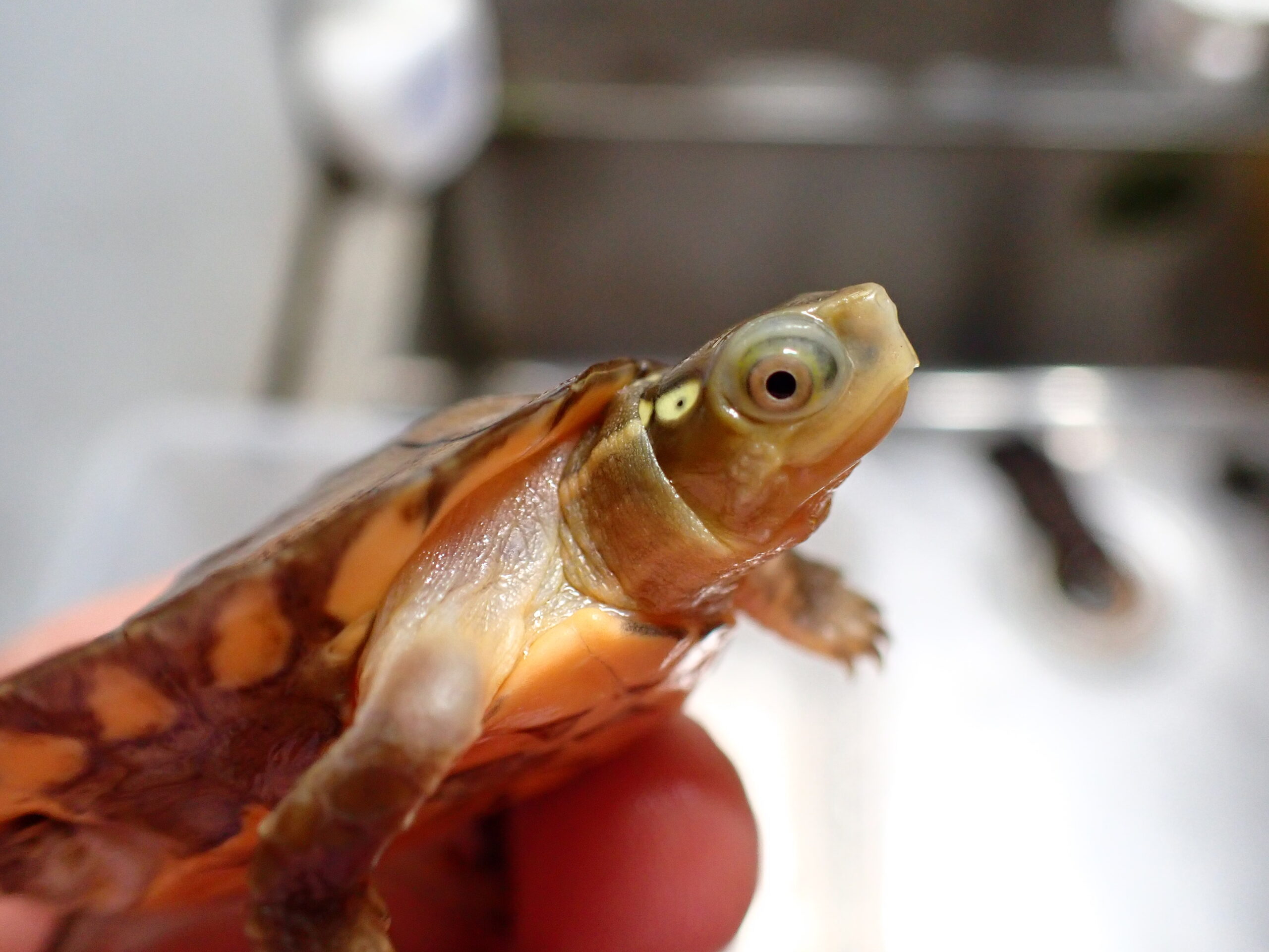 首筋や目が血走ったように赤くなったオスの成体は超かっこいいです!滅多に流通しない高額なカメですが、今年は中国からCBのベビーが輸入されて見かける機会も多かったように思います。入荷は1匹のみです。爪欠けた甲ズレありませんし尾先までピンピンです。餌食いも良好で咲ひかりバクバク食べてます!値段も大特価なので超オススメです!