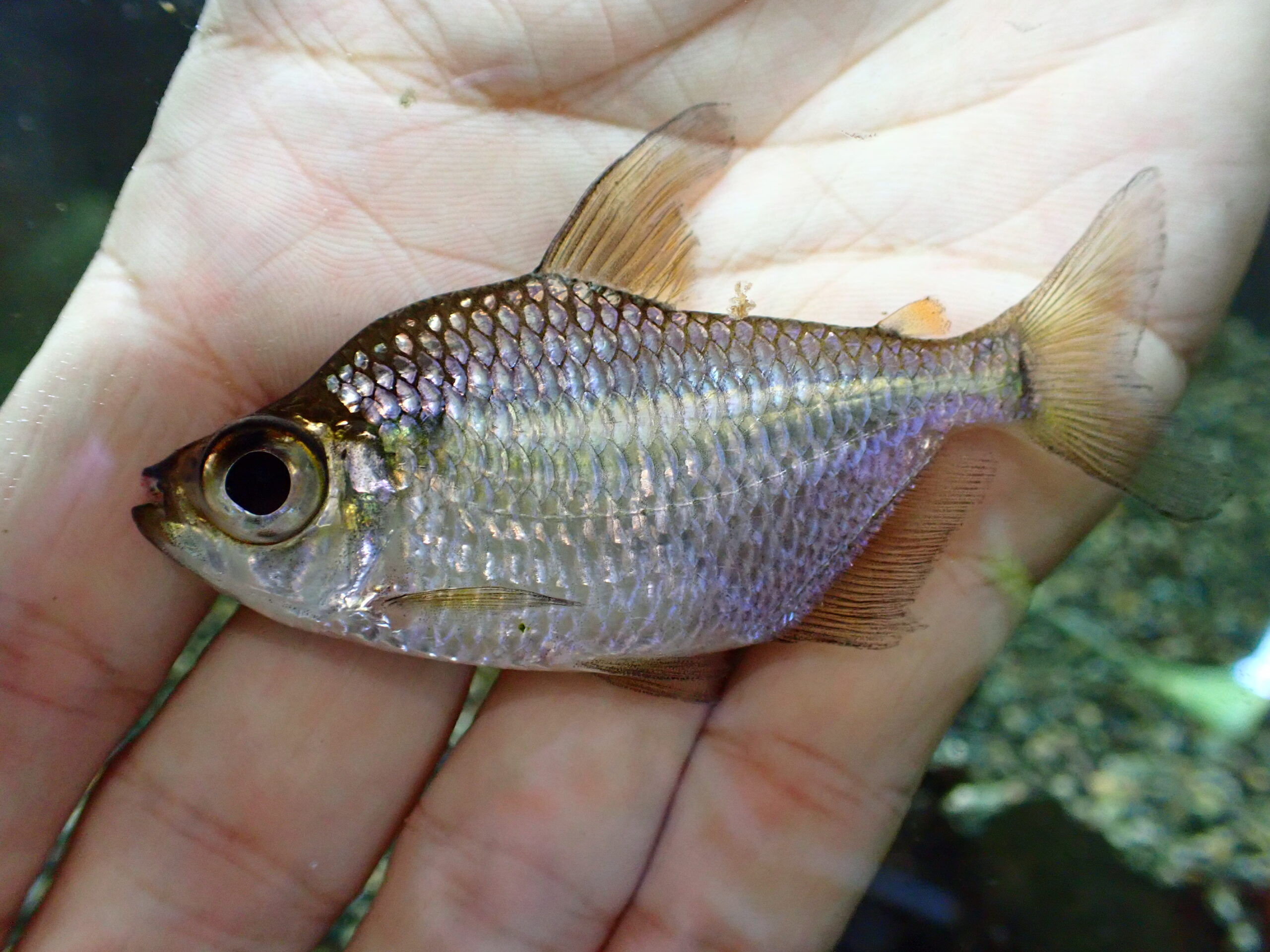 ペルー産のビッグアイカラシン似の謎カラシン。これすごく良いです!ちょっとだけ口先ぶつけていますので特価です。治ったら値段戻します。2匹いますが2匹とも同じ感じです。画像同一個体です。