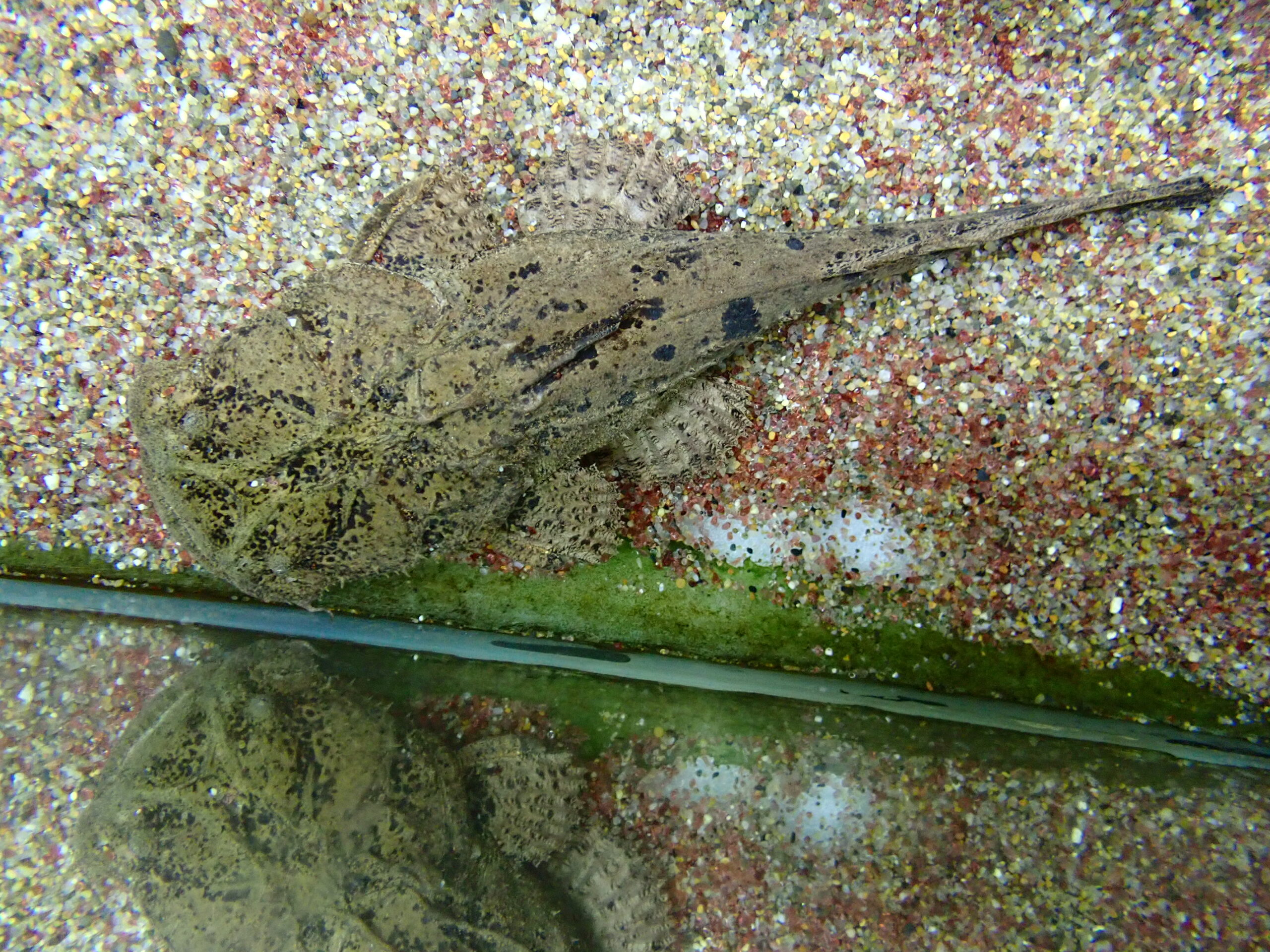 インドのぺったんこナマズ。値段もそんなに高くないし見た目のインパクトから人気があります。よく似たインドネシアのバンカネンシス(最近全然来てないけど。)は神経質で飼いにくいんですが、インドのチャカは飼いやすいです。がんばれば人工飼料に餌付く個体もいたりいなかったり・・・。