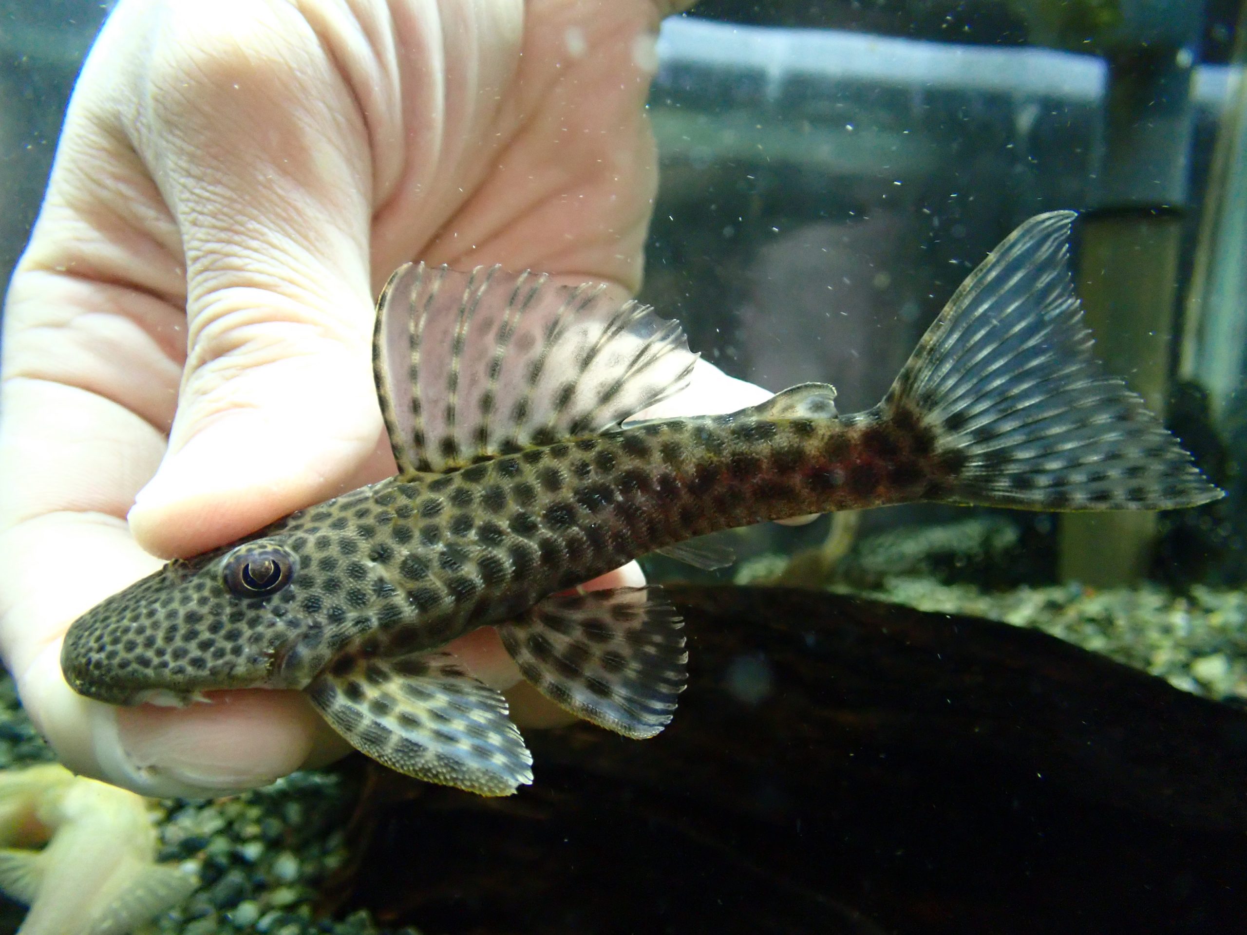珍しいプレコです。結構前に入荷して1匹だけ残ってました。なので長期飼い込みで状態は抜群です!