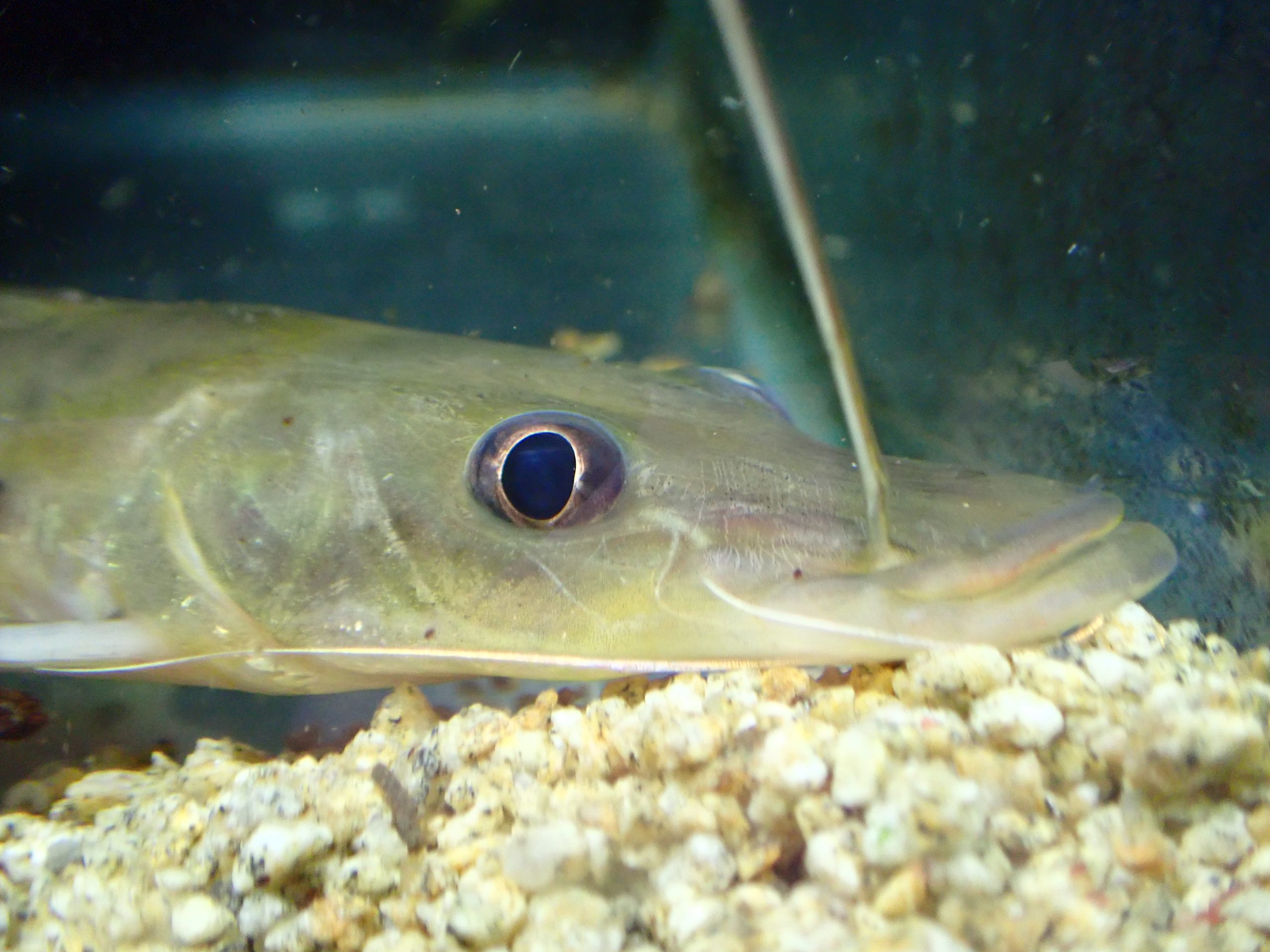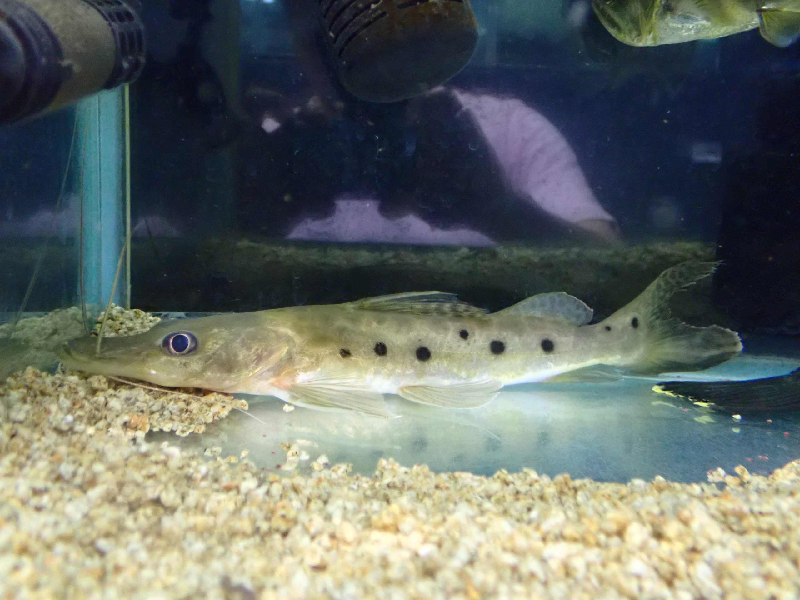 30年前とかは結構普通に売られてて全然珍しい魚でもなかったんですけどね、今では超激レアなナマズです。ブラジルからまぁまぁ大きいサイズで輸入された個体ですが、ちゃんと下あご出ています。エイティーンスポットはこれが正解です。