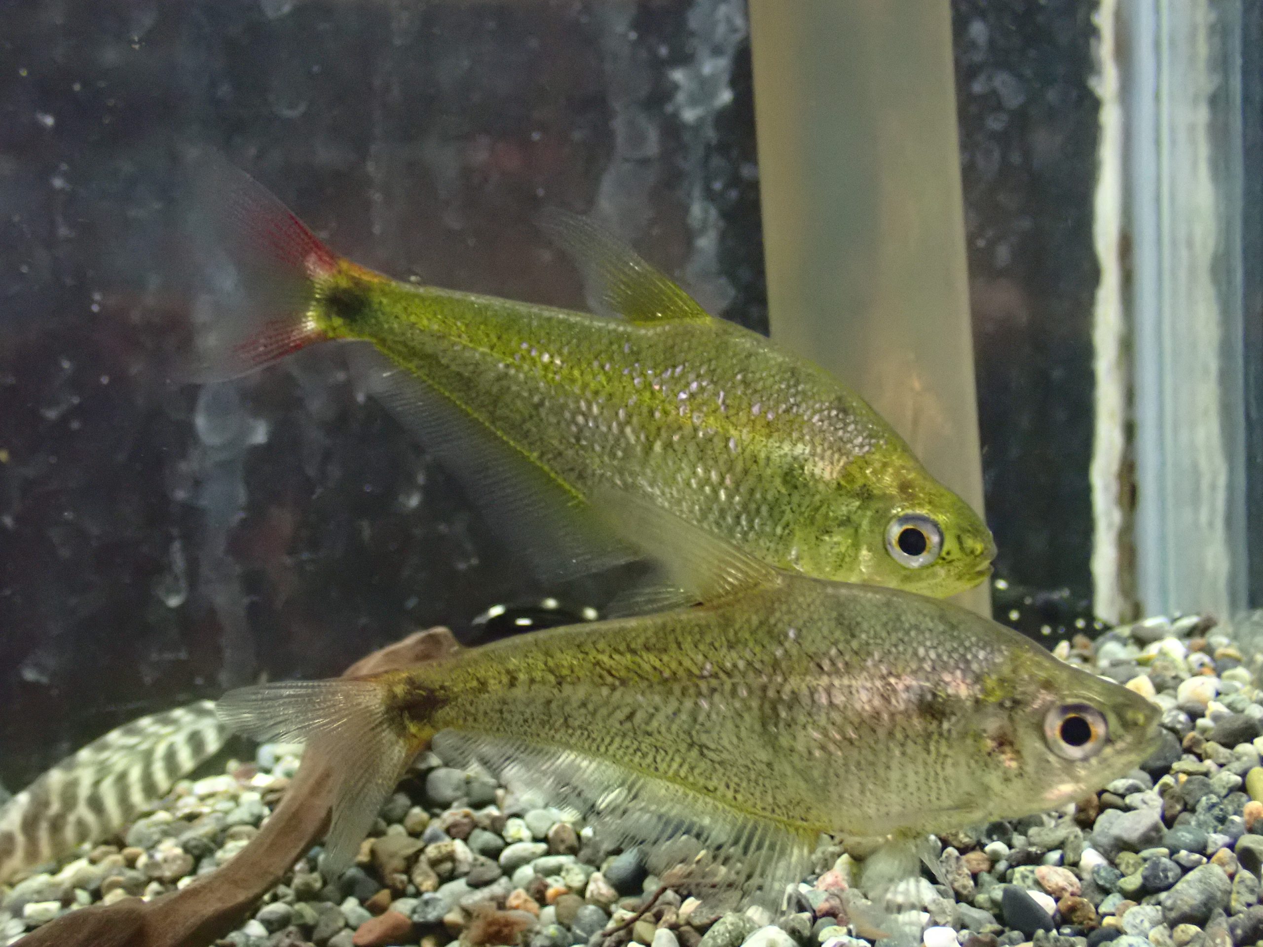 赤いヒレとゴールドの体色がとてもキレイなカラックスです。2匹いるけど1匹はちょっと地味です。オスメスなのかな??分からないけどペアかもなんでぜひ2匹まとめてどうぞ!