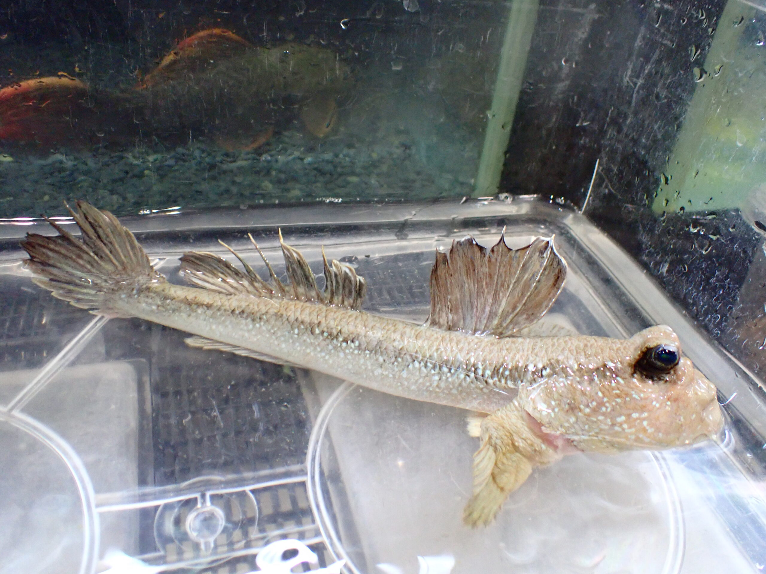 超久しぶりのジャイアントマッドスキッパー Periophthalmodon schlosseri です!当店への入荷は余裕で10年以上、たぶん15年ぶり位だと思います!20年位前まではタイからちょいちょい輸入があったんですが、いつの間にかぱったり・・・。今ではほとんど輸入されることのない激レアなトビハゼです。自然下では淡水から汽水域に生息しているので一時的にであれば淡水飼育も可能ですが、長期飼育を考えればやはり少しは塩を入れてあげた方が安心だと思います。ただ基本的にはかなり丈夫な魚で、当店では大きめのプラケでストックでエアレーションやフィルターなども無し。毎日か2日に一回全量換水で、水換えも温度だけ合わせた淡水で、水換えしたら塩を一つまみ入れる、みたいな感じです。餌も生き餌や生餌でなくても大丈夫でクリルや乾燥エビであればすぐにピンセットからでも食べてくれるようになりますよ!餌の時には寄って来るようにもなるし、とてもかわいいトビハゼです!このサイズで輸入された個体ですし、おそらく現地ではまとめてストックしていたと思いますので多少のヒレ裂けなどはご了承ください、しばらく飼い込んであげれば治ります。入荷は少数ですのでシュロッセリの入荷を待ち焦がれてたという方はお早めに!