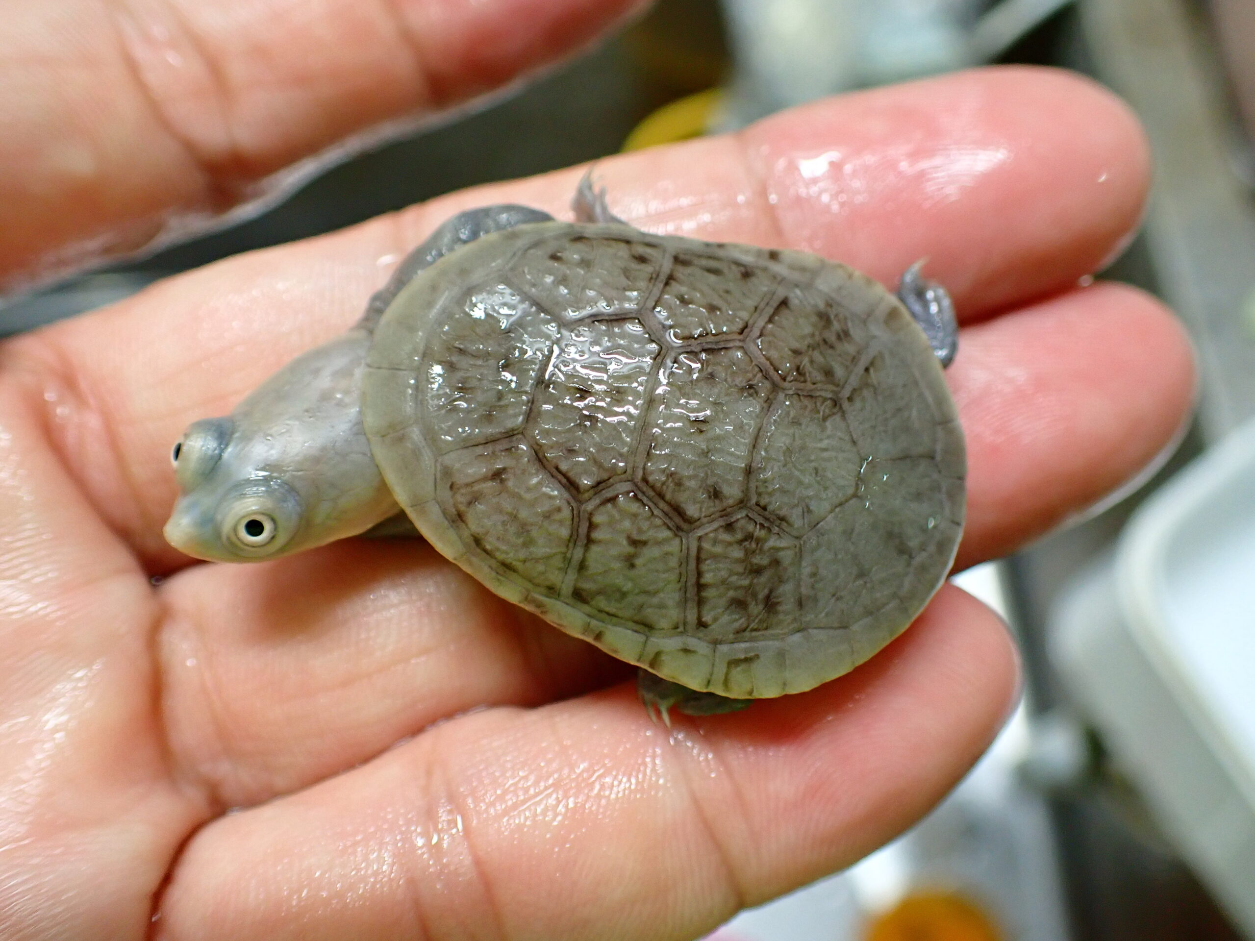 体色薄めでやや白っぽい個体で、ナガクビガメに多い甲ズレや多甲板もありません。白いケースであまり強い光を当てないで飼えばさらに白っぽくなるかも??餌は配合飼料はまだ食べませんが、生き餌の他に乾燥川エビ、乾燥コオロギをよく食べてます。