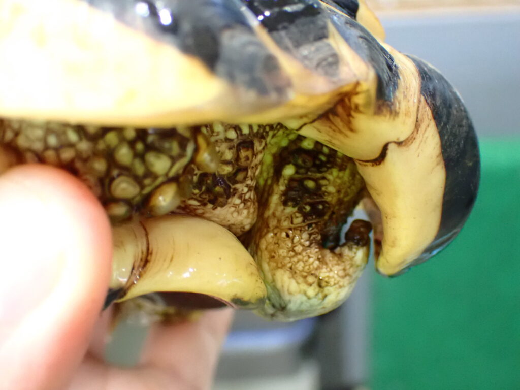 ミスジハコガメの中でも流通量の少ない希少なタイプで、頭の黄色い発色も鮮やかで派手な発色が特徴です。まだ小さいですが頭は既に黄色いです。人工飼料に餌付いていて状態は良好です。甲ズレや尾切れ、爪欠けなどの欠点もありません。今回大特価ですのでお見逃しなく!