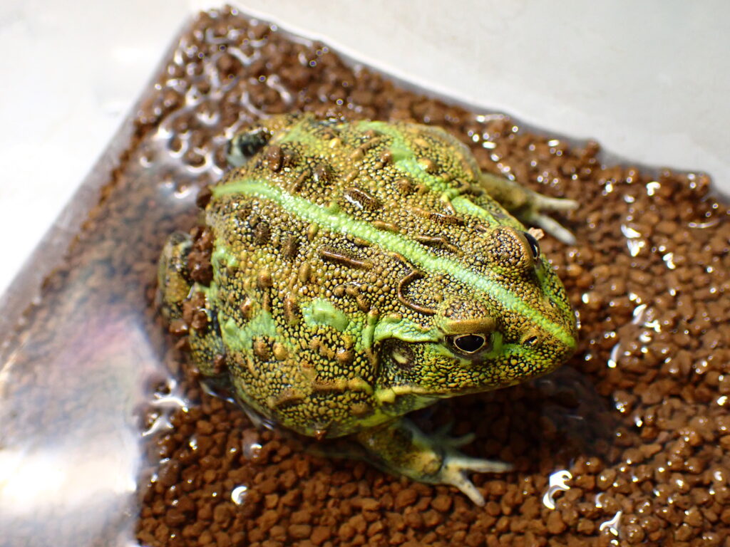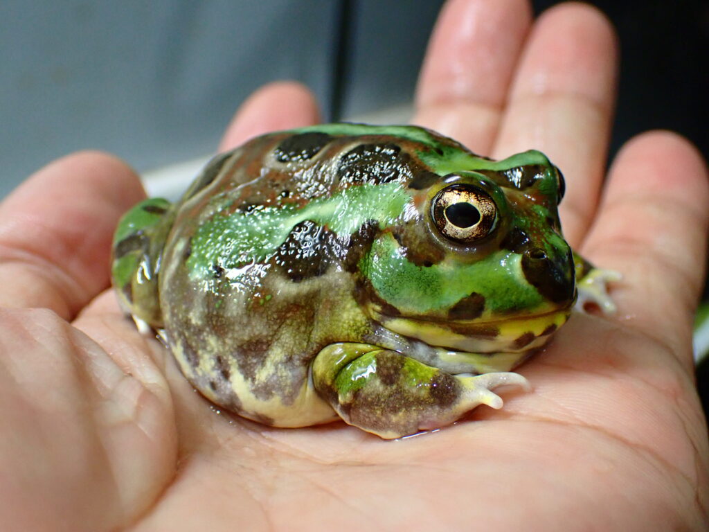 大きいアダルトサイズなチャコガエルです。丸くてころっとしててすごくかわいいです!上2つ、下2つの画像がそれぞれ同一個体です。