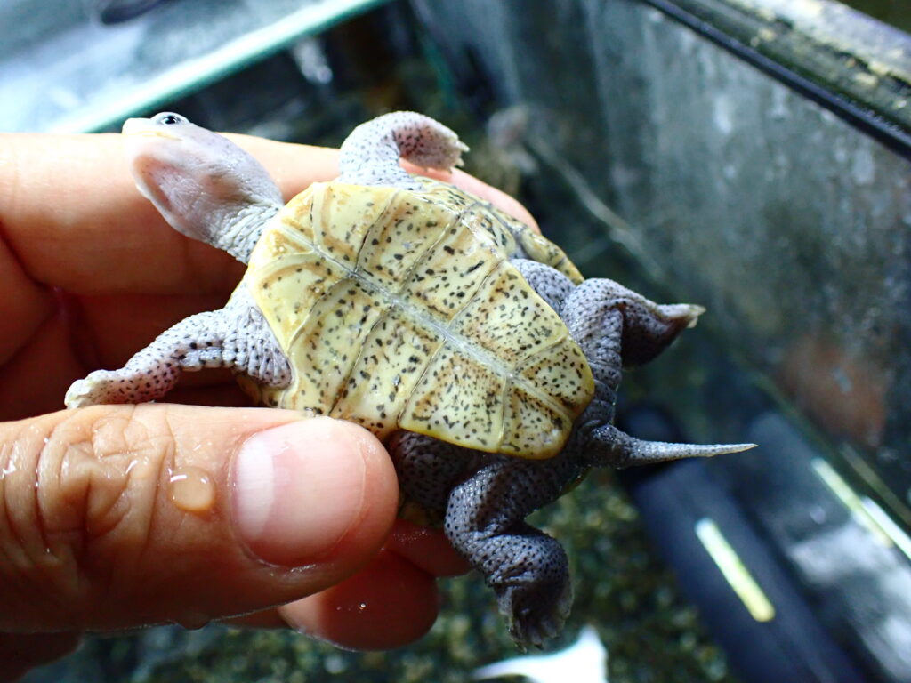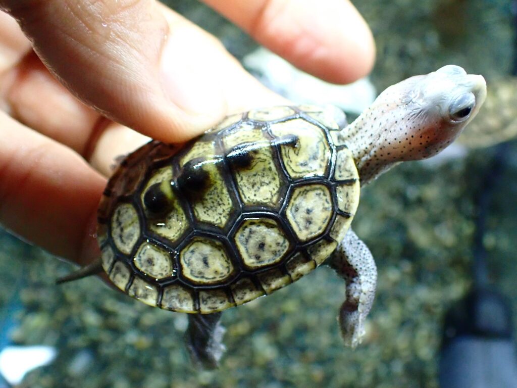 国内CBのハイクオリティな個体です。甲羅や頭も白く将来が楽しみな個体です。餌食い良好で人工飼料(咲ひかり)ばくばく食べてます。よく泳ぐカメなので水槽で泳がせて飼うととてもキレイでかわいいです。