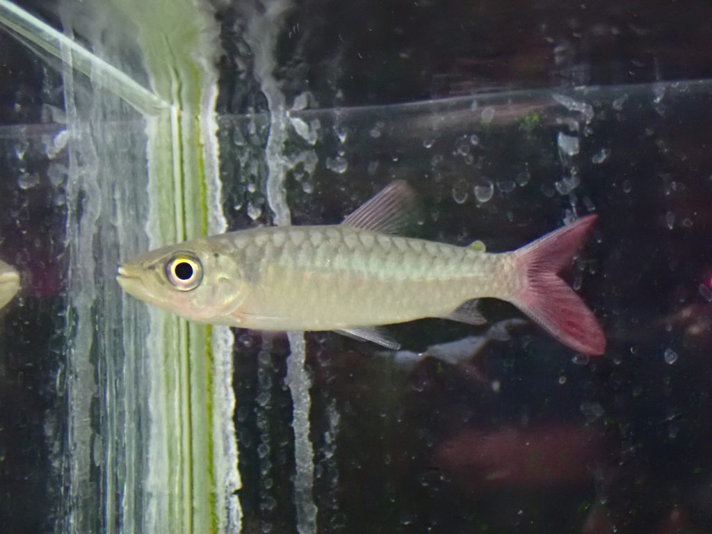 久々のリアルなピンクテールカラシン。30~40年前はこれがたくさん輸入されてて一番普通のピンクテールカラシンでしたが、その後ぱったり入荷が途絶え、20年くらい前からは全くと言っていいほど輸入がなくなりました。ここ1~2年でポツポツと少数が輸入されるようにはなりましたが、それでもその数は極わずかでまだまだ幻の魚のレベル。今回も輸入されたのはほんの数匹ということで当店への入荷は1匹のみです。希少な魚ですのでお探しだった方はお早めに!