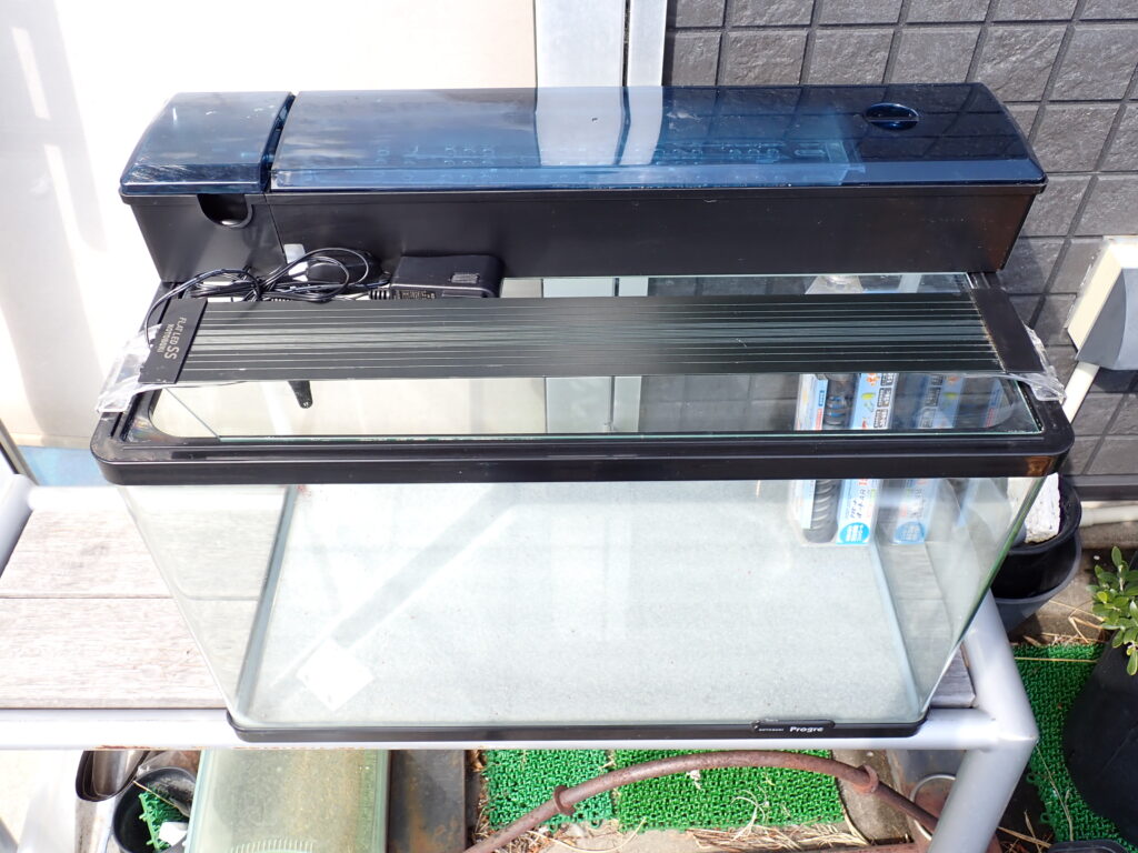 60×30×36cm曲げガラス水槽、上部フィルター、LEDライト、ガラス蓋、エヴァリスプリセットオートヒーター150(未開封の未使用品)のセットです。先日まで使用していた水槽のセットです。ポンプ、ライトはあらためて動作確認済みですので問題無く使用可能ですが、中古に付き一切の保証はできませんので予めご了承ください。ヒーターは新品ですが問屋さんから仕入れた商品ではありませんので故障の際の保証はできません。発送はできません。とてもキレイなセットなのでお買い得です。