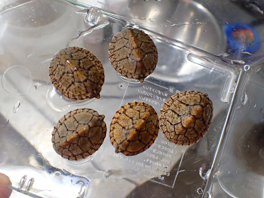 もともと在庫でいた甲長9mの個体が¥33000なんで、ちょっと小さいですがお買い得です。餌も冷凍餌に餌付いてます。
