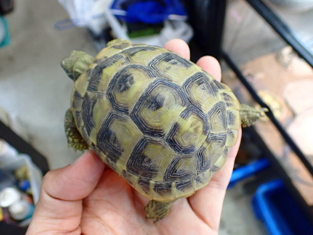 安心サイズのヘルマンが入荷しました。オスとメスのペアで入荷していますが、どちらも甲高でとても良い形をしています!餌食いも良好で絶好調ですよ!ぜひペアで繁殖狙ってください!オスメスで入荷してますし間違いないとは思いますががこのサイズなので性別の保証は絶対ではないので悪しからず・・・。上3つがオス、下3つがメスの画像です。