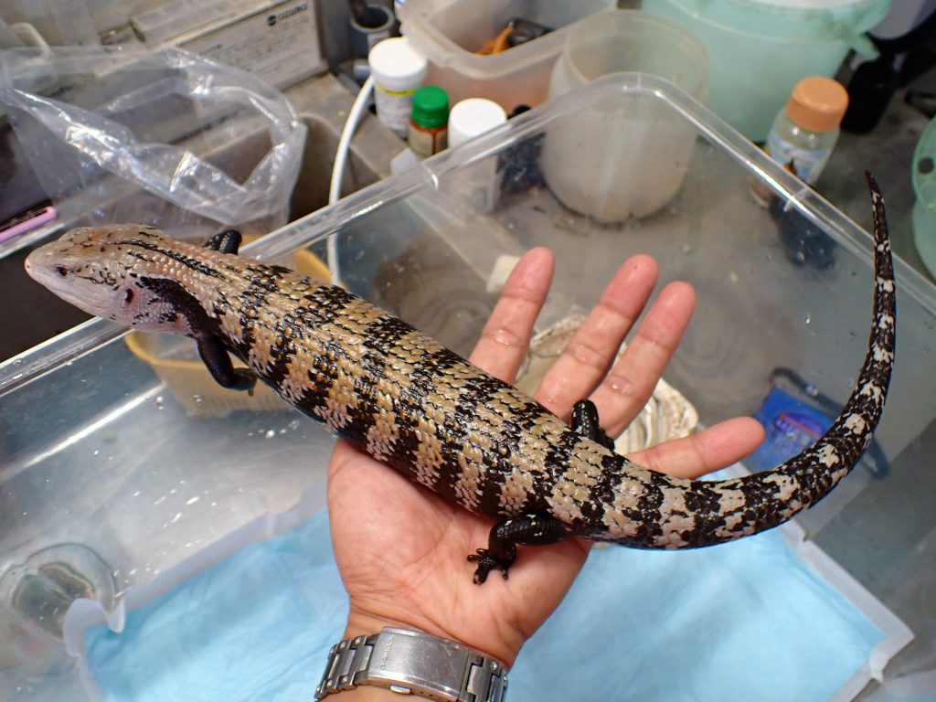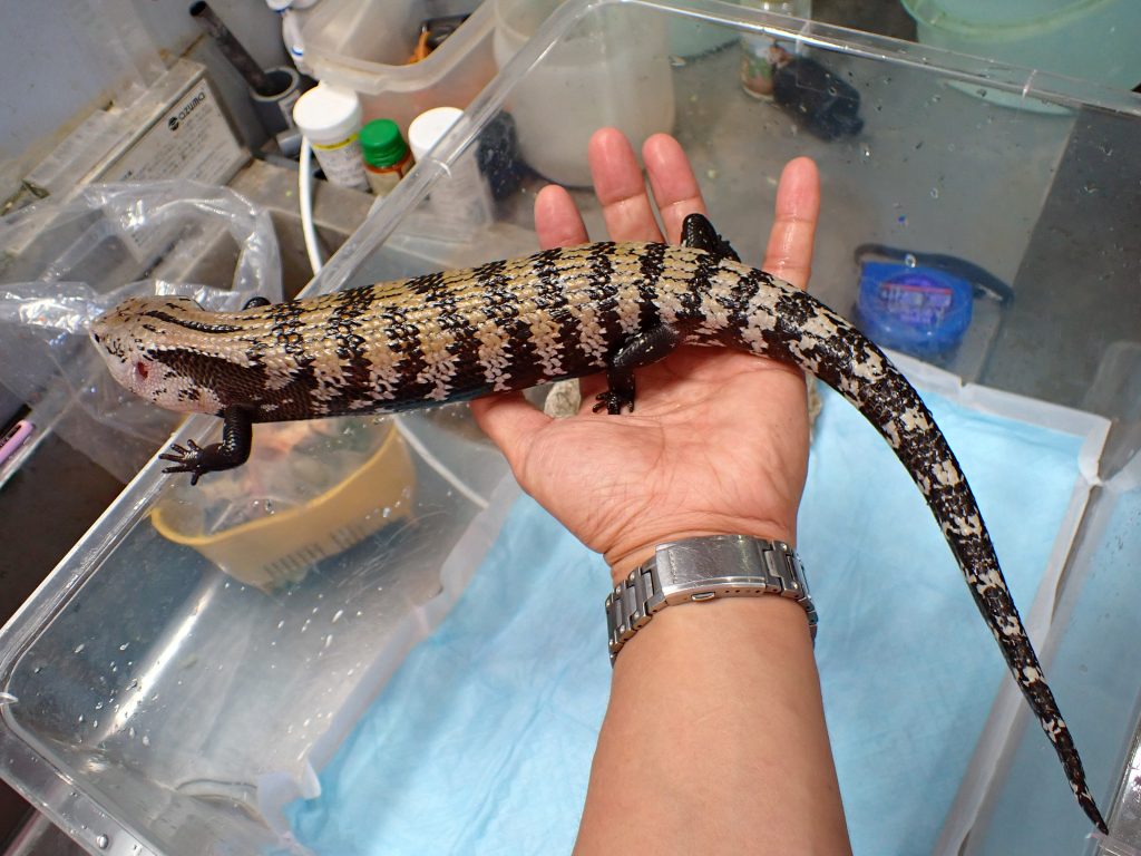 ワイルドなので何本か爪欠けありますが、指欠けは無いのでそんなに気にならないと思います。全体的にちょっと色の薄い個体で背中の茶色い部分もやや白っぽくなっています(画像だと分かりにくいですが、実物は画像よりも白っぽい感じです。)。もちろんアザンとかそういうのでは全然ないんですが、明るめな体色の個体で、舌の色もちょっと薄い感じで、舌先は青いけど元の方はピンク色です。特別な色変わりとかではないと思いますが、値段高くないですし気になる方は育ててみてください。