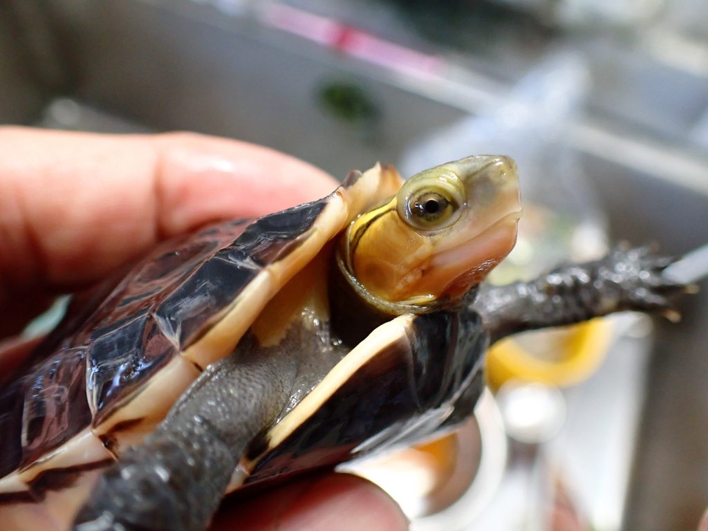 基亜種のキボシヌマガメです。甲羅にはびっしりと放射模様が出ているのでこれから成長につれてかなりキレイな個体になりそうです!