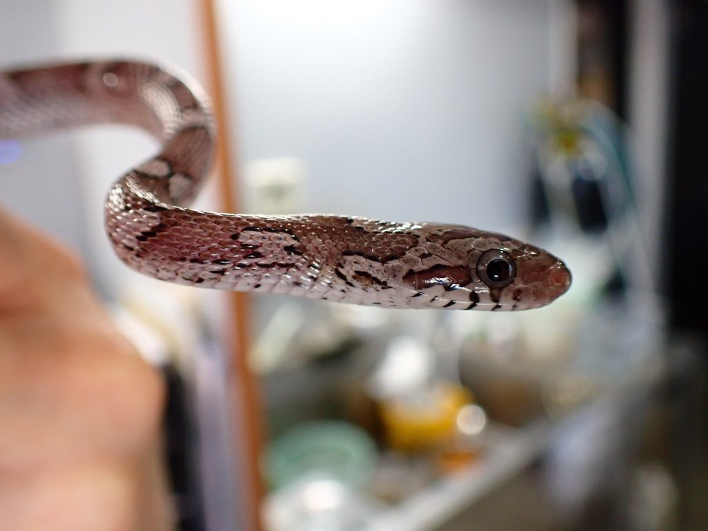 グレー系のカラーが渋くてかっこいいコーンスネークです。ピンクマウスにしっかり餌付いていますので安心です。