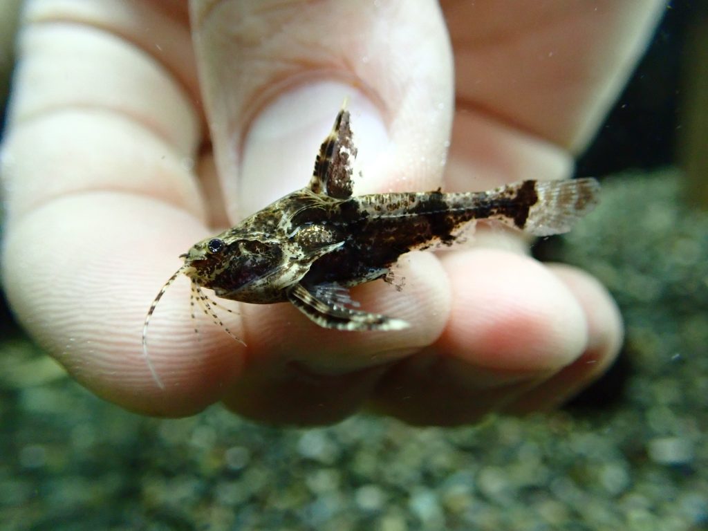 泳がないブルーカンディルみたいなやつです。基本的に水槽の底で転がってます・・・。かわいいです。