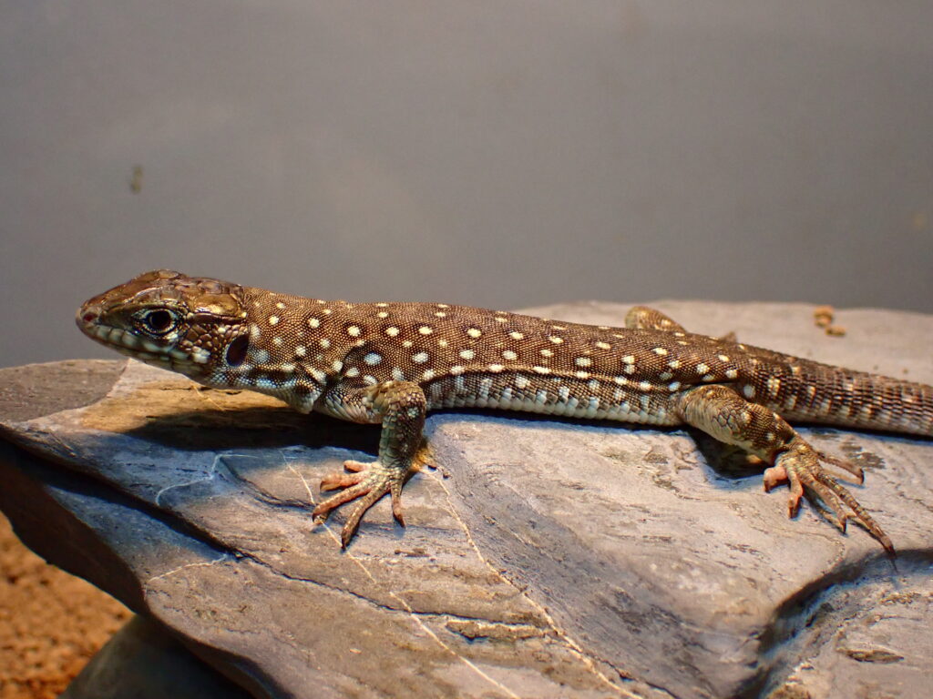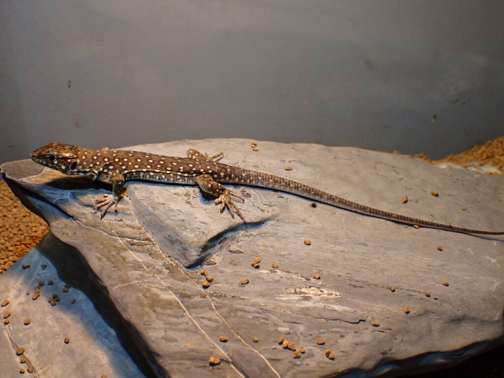 頭胴長は11cm程ですが、尾が長いので全長で40cmほどあります。尾切れや爪欠けの無い完品です。丈夫で飼いやすいトカゲで、人工飼料にも餌付きます。派手さはないですがかっこいいトカゲです。