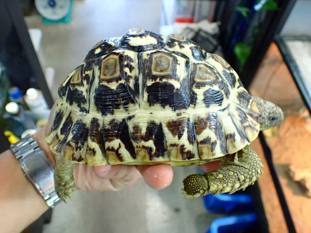 飼い込みの安心サイズなヒョウモンリクガメです。キレイで人気のリクガメですね!