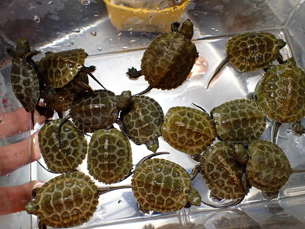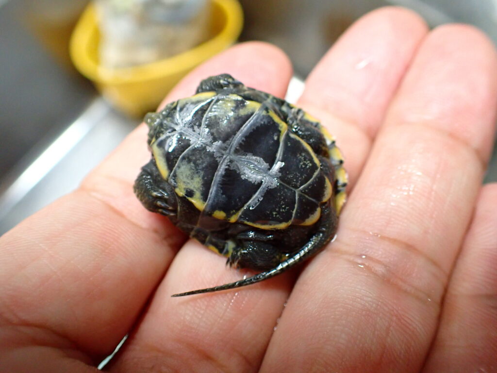 キレイなウンキュウも入荷しましたが、これは1匹だけです。甲羅の形は完全にクサガメですが模様はイシガメな感じ。キレイになりそうな個体です。