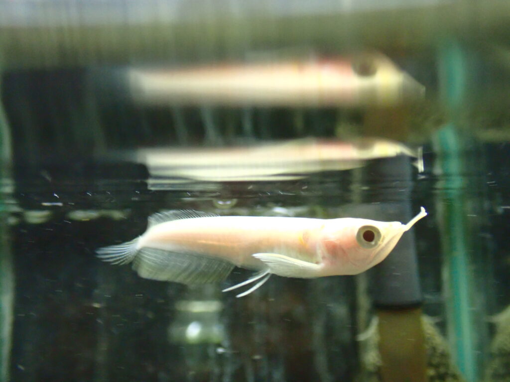 リアルレッドアイアルビノスポットナイフです。これも久しぶりの入荷です。真っ白でとてもキレイなナイフフィッシュです!
