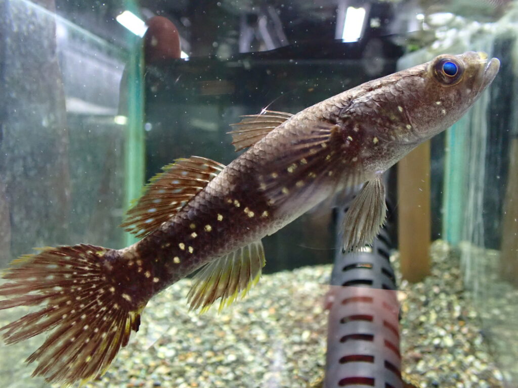 ホワイトスポットの入ったスネークヘッドガジョンだって聞いてたからGiuris charpiniが来るのかなと思ってましたが違いました・・・。たぶんこれリアルなホシマダラハゼだと思います。沖縄にもいますがリアルホシマダラは今まで観賞魚としての流通はほとんど無かったと思うのでかなりレアかも!?というのも、沖縄産のホシマダラハゼという名前のハゼは前はよく入荷してたんです(ここ数年はぱったりですが・・・。)。で、その前によく入荷してた沖縄のホシマダラハゼっていうのが、実はホシマダラハゼではなくてクモマダラハゼっていうハゼでした。ホシマダラハゼとして混同されていたハゼが2年前に3種類に分けられて、そのうちの1つのクモマダラハゼが前によくホシマダラハゼとして流通していました(してたと思います。)。昔ホシマダラで売ってたハゼは確かにホシっていうような模様は無く成魚はほぼ真っ黒で幼魚でも白いバンド模様があるだけでしたしね。でも今回来たのはちゃんとホシ出てます!まさにホシマダラなキレイなハゼです!カワアナゴ系のハゼがお好きな方はお見逃しなく!2つの画像は別の個体です。画像アップする前に売れてしまった個体もいるので残り画像の2匹です。混泳の為少しヒレバサバサしてますが今は分けてあるのですぐに治ります。