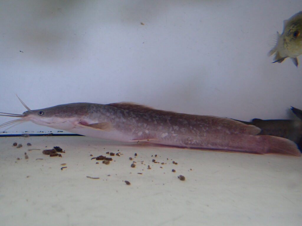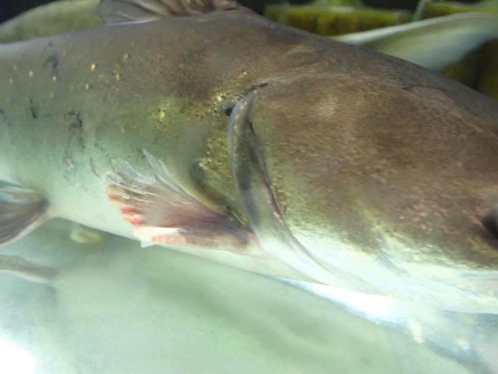 これもお客様からの下取につき大特価です!胸ビレの棘がスレて短くなっていますが、時間かかるけど再生します。純淡水で長期ストックしている個体ですし、餌もなんでも食べてくれて絶好調です!大特価につき混泳用とかにいかがですか??