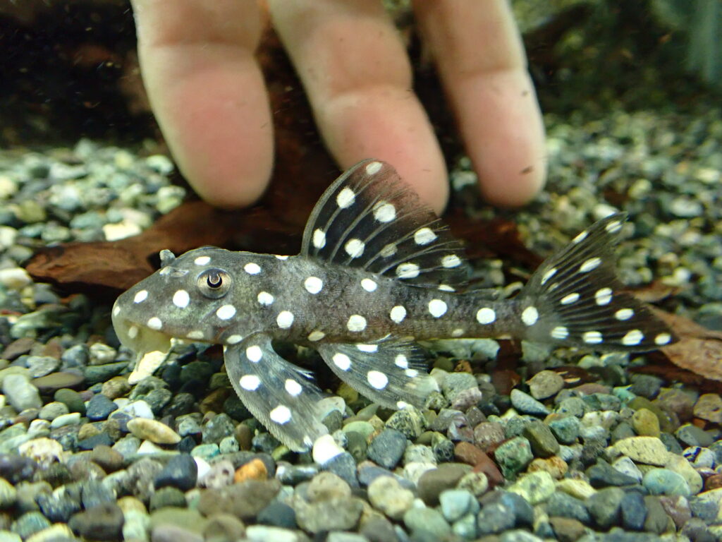 これ好き!白黒の水玉模様がとてもキレイなプレコ。滅多に輸入されない希少なプレコで値段も普通はもっと高いんですが今回は特別価格!入荷は少数ですのでマニアの方は必見ですよ!ちなみにブラックウィズホワイトカイザーも在庫いますよ!