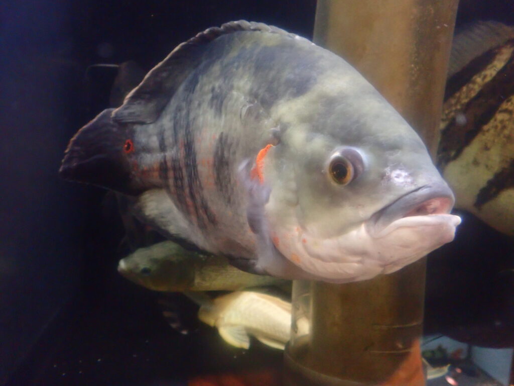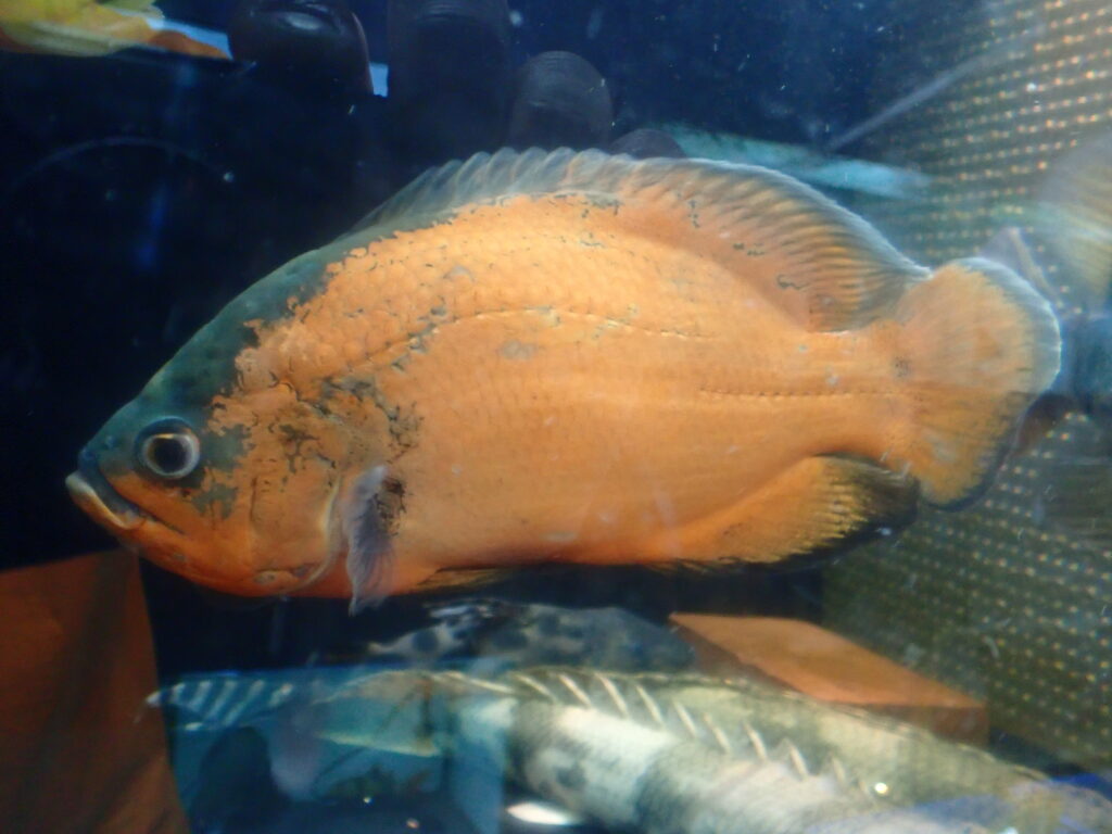 お客様からの下取個体になります。このサイズで販売されることは稀ですね。ずっと大型魚と混泳していた個体なので混泳水槽でもあまり悪さをしません。店頭でもオスカーやキクラ、ダトニオ、ナマズ、エイ、ポリプと混泳していますが全然問題ありません。真っ金キンではありませんが頬やヒレの黄色い発色が見られルキレイな個体です。発送もしますがサイズが大きいのでできれば店頭まで取りに来てくれる方にお願いしたいです。発送の場合は死着保証無しになります。