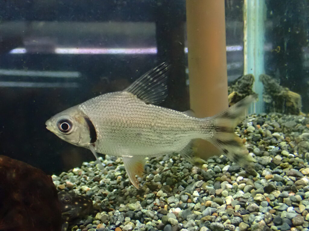 けっこう大きくなる細長いカラシン。大きいサイズで輸入されるとなかなか餌食べてくれなくてけっこう手こずるんですが、小さいサイズだと普通に餌を食べてぐんぐん成長します。なのでこの魚は絶対小さいのから飼った方がいいです。ちょっと白点付きで来てるので販売はトリートメントが済んでからにします。