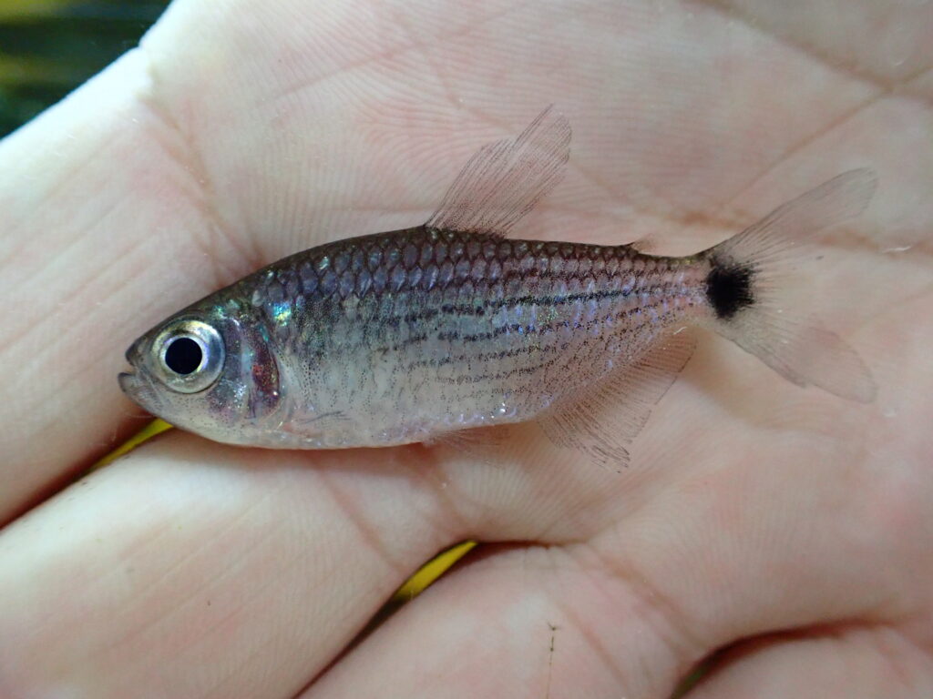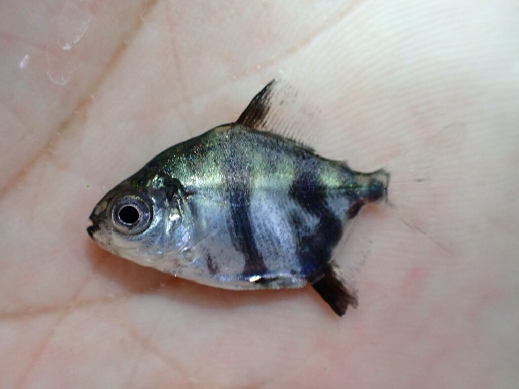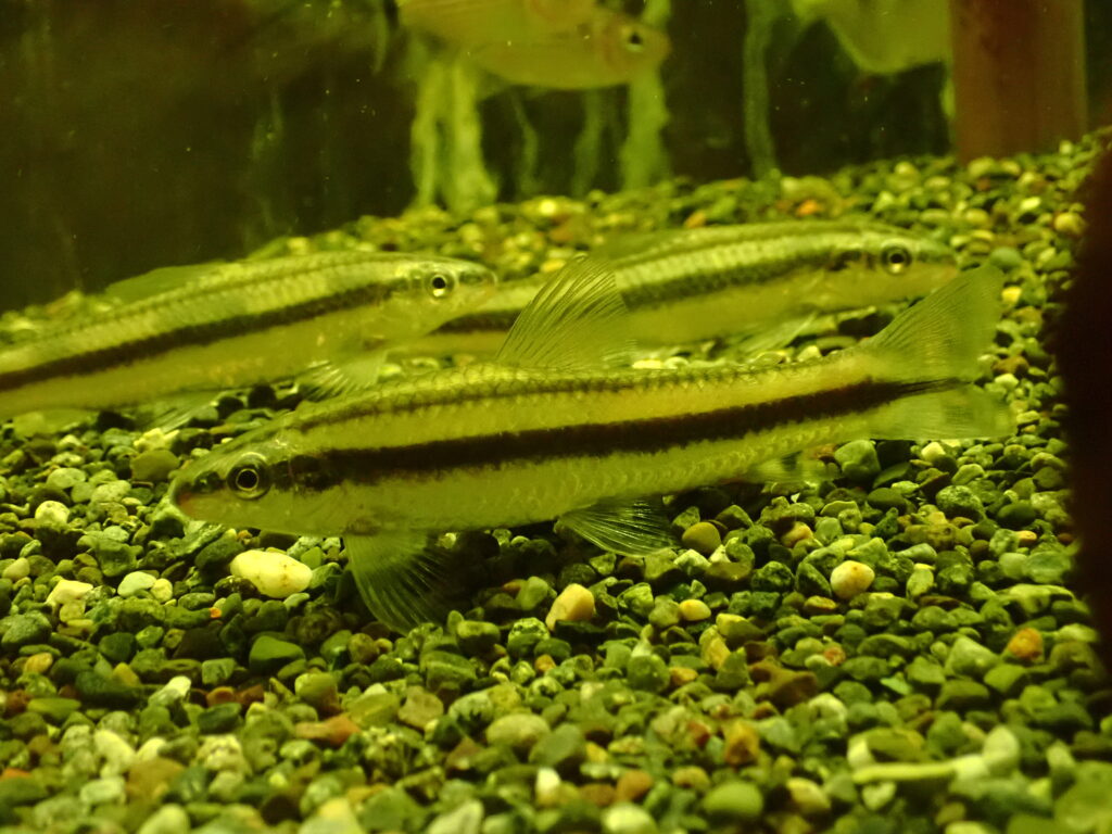 パロドンとかダーターテトラみたいな底棲性のカラシンです。アパレイオドンは黒いコケをよく食べてくれるので水槽の掃除にも役立ちますよ。