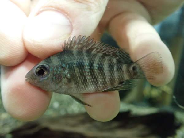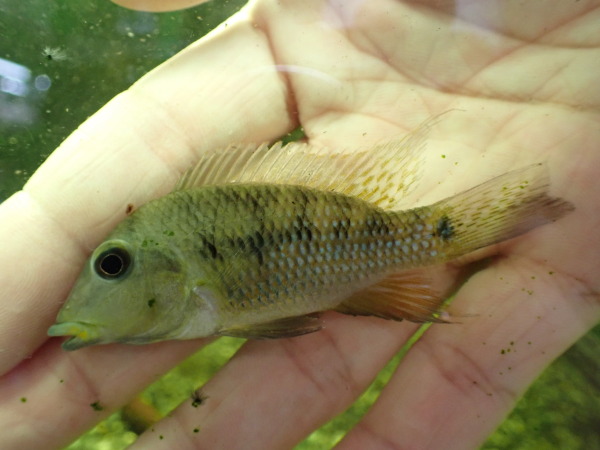 これ好き!これも滅多に入荷しない珍しいシクリッドです。今回かなり小さいサイズで入荷したので全然特徴が出ていませんが、成長につれてメタリックブルーのスポットが出てきてものすごくキレイになります!本来はまぁまぁ高価なシクリッドなので、今回ちいさいですがこの値段は実はかなりお買い得なんです!シクラソマとか中南米のこれ系のシクリッドがお好きな方はお見逃しなく!!中段右の画像です。