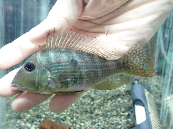 ゲオファーガスに近縁なシクリッド。これも今回サイズの割にかなりお買い得でオススメです!安くても侮れないです!すごくキレイになる魚ですよ。