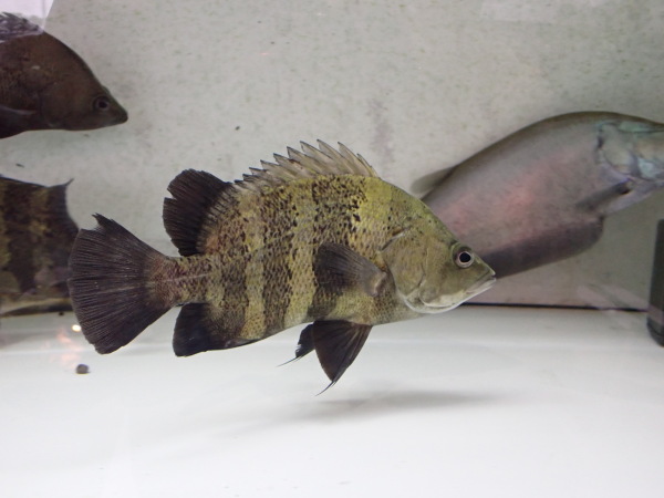 超お買い得!オトヒメ食べるよ!ということで入荷しましたがうちオトヒメ扱ってなくて、キャット試したけどキャットは食べませんでした・・・。そういうわけで人工飼料に餌付いてるらしいけど未確認な個体です。あと、入荷時にエラ蓋の縁が少しだけ捲れていたのでカットしてあります。たぶんキレイに再生するとは思いますがお約束はできませんので現状特価で販売させていただきます。キレイに再生したら値段上げさせていただきますので悪しからず・・・。エラ以外に欠点は無く、アゴスレも無いしエラ蓋のオレンジも濃いキレイな個体です!中段左の画像です。