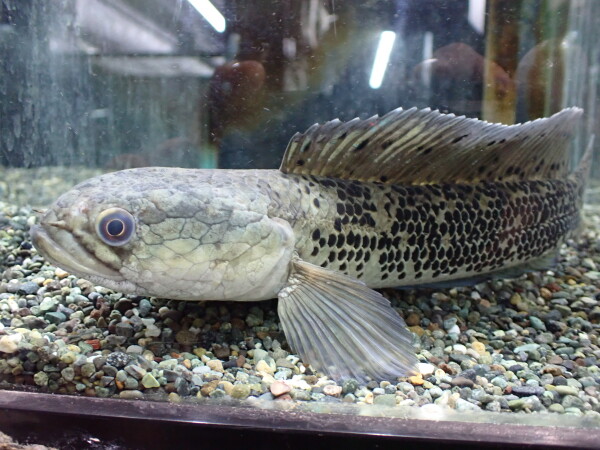 このサイズだと餌もメダカとか小さめの小赤食べられるから飼い易いですね。デンキウナギは小さいベビーで輸入されることも多いですが、ベビーは餌が面倒なんですよね、イトメは食べるけど冷凍赤虫食べないし、しかもイトメも質の悪いのあげると簡単に病気になるし・・・。だから小さいデンキウナギは育てるの面倒なんです。でもメダカ食べられるサイズになると丈夫で飼い易いですよ!