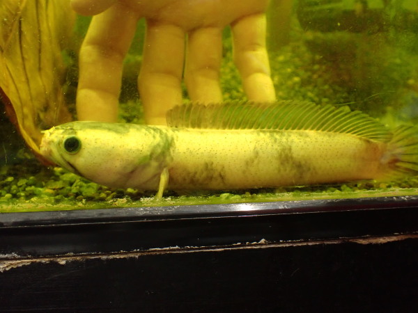これすごいです。インディアンの色彩変異はたまに来るから見てもそんなに驚かないけどドワーフスネークヘッドの色彩変異個体は超珍しいです!クリーム色っぽい白っぽい地色によく見ると細かい黒い点々があったりヒレや体の一部が黒くなってたり、とにかく変わった個体です。ちょっとヒレ裂けがあったり口先ぶつけてたりすりのでしばらくトリートメントしてから販売する予定ですが、気になる方はお問い合わせください。今回1匹のみ輸入された超激レアな1点物!スネークヘッドマニアの方、特殊個体マニアの方は必見です!