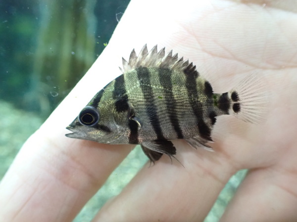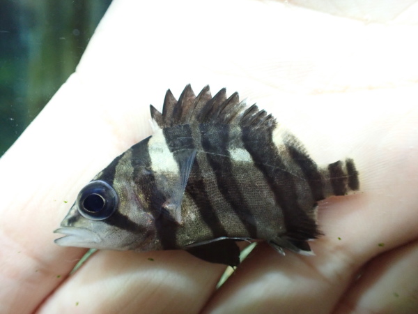 プラスワンと一緒にメニーバーも入荷です!メニーバーはダトニオの仲間の中でも特に人工飼料に餌付きやすく飼い易いです!発色もいいし顔も小顔で尖っててカッコいいから個人的には結構好きなんですよね。安いけど侮れない良い魚ですよ!左下の画像です。