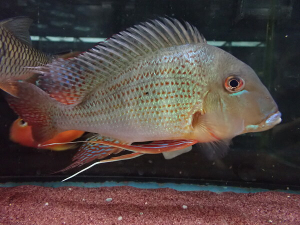 前回即売れだったので再入荷です!ただ残念なことに今回来た個体は尾ビレの一番下の条が少し曲がっていました。なので曲がっている部分カットしてあります。一番下の太い部分をカットしたので完全に元に戻るには少し時間がかかるかもですが、ちゃんと再生しますのでご安心下さい。そういう訳で現状でヒレ治るまでは値段下げさせていただきます。ヒレ治ったら値段戻しますので現状でも構わないという方はお早めに!左上の画像です。