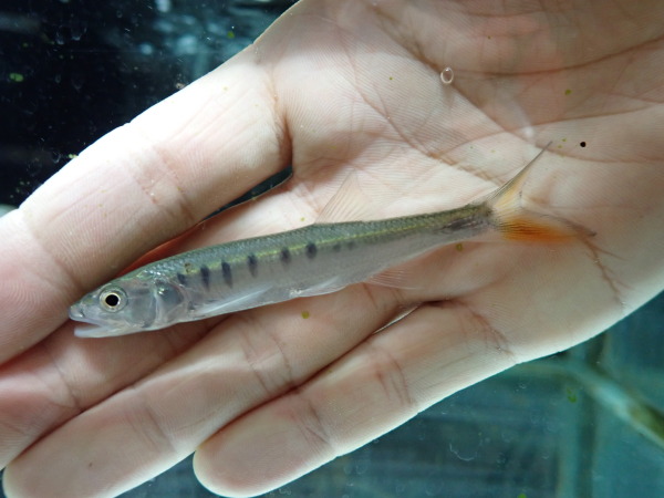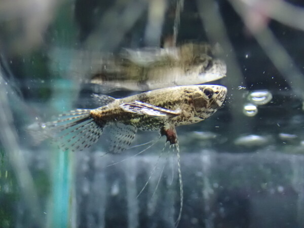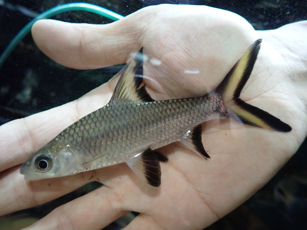 大きなヒレが特徴で、上から見た姿が蝶や蛾のような見えることからバタフライフィッシュと名付けられた古代魚の仲間。顔付きはまんま小さいアロワナです。驚くとその大きなヒレを使ってジャンプするので飛び出しには注意しましょう。最大でも15cm位の魚なので小さな水槽でも飼育が可能です。小さいけどアロワナみたいな雰囲気を楽しめる良い魚ですよ。あんまり人気は無いけど・・・。右上の画像です。