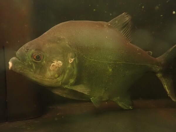 体高あって目も真っ赤で超カッコいいブラックピラニア来ました!黒水槽に入れてはいますが体色も真っ黒ですよ!産地はブラックピラニアとしてはかなり珍しいプレト河産。ネグロ河のすぐそばです。ネグロ本流産のブラックは入荷が少なくマニアの間でも特に人気が高く値段も高いことで有名。その近郊で採集された個体なのでこいつも将来性はかなり高いと思います!30cm近くあるので迫力もありますよ!入荷直後なので多少のスレはありますがこのサイズで輸入されたことを考えれば着状態は良好!性格も神経質な感じはなく水槽の前にガンガン出てきます!この個体はオススメです!右上の画像です。