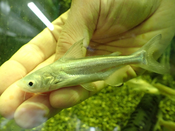 こんなに安くなっちゃっていいんですか!?っていう位の値段。当店には2~3年ぶりに入荷したと思いますが、前回は¥38000とか¥45000とかそれくらいの値段だっんじゃないかな?それが嬉しいような悲しいような、10分の1の値段になっちゃったよ・・・。本当はもっともっと高く売りたいところですが問屋さんの卸値が超安かったからこんなもんなんです。よそのお店に比べてうちだけ超高かったらぼったくりみたいになっちゃうから・・・。値段安いですがちゃんとシルバーな体色のプラチナ個体で黒い体色のノーマル個体とは全然違うのでご安心下さい。ただしプラチナパールンはもともとプラチナブラックアロワナとかプラチナアリゲーターガーみたいな白いプラチナカラーじゃないです。ピカピカした銀色のプラチナカラーなのでその辺はご理解下さいね。元気に入荷してますが白点付きでした。なのでしばらくトリートメントしてからの販売になります。ご予約はOKですので気になる方はお問い合わせください。複数入荷してますがすぐに売り切れちゃうと思いますのでお早めに!!中段左の画像です。
