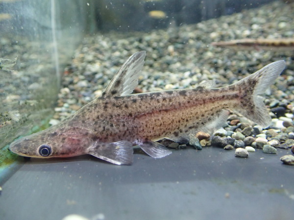 最近ダルメシアンドルフィンキャットのインボイスでも流通しているちょっと謎のドルフィンキャット。最大で45cmほどになる Ageneiosus polystictus ではないかと思われますが、情報が少ないので真偽のほどは不明。海外のサイトではポリスティクタスの幼魚として今回入荷したのと同じ魚の画像が載っていましたが、成魚の雰囲気があまりにも違うので本当にこれが大きくなったらそうなるの?という印象も無きにしも非ず・・・。気になる方は学名で画像検索をしてみてください。幼魚の画像はあんまり出てきませんが成魚の画像はいくつか出てきますから。まぁいずれにしろほとんど見かけない変わったドルフィンキャットです。もうだいぶ前、たぶん7~8年前になるのかな?マディラ産のマーブルドルフィンキャットのインボイスで入荷した魚がいたんですが、それによく似てますね。もしそれと同じ魚だとしたら入荷したのは7~8年ぶりってことになるのか・・・?かなり珍しいドルフィンキャットだと思いますのでマニアの方はぜひ!左上の画像です。