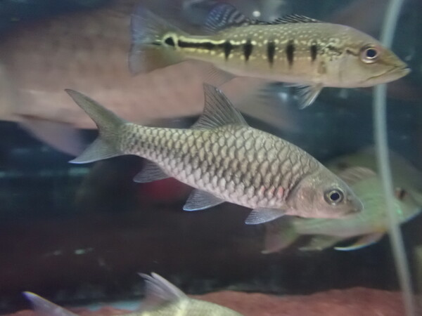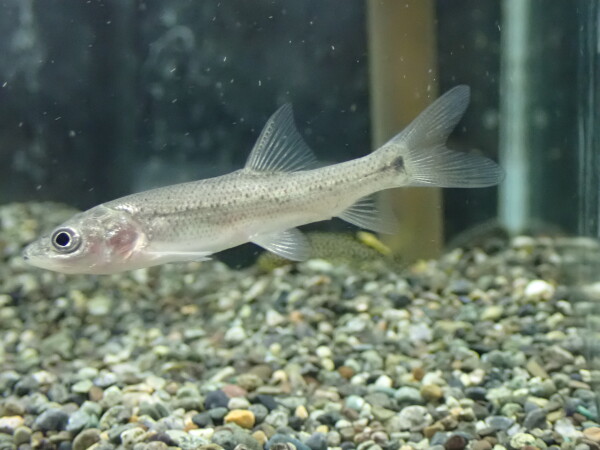 中国から来るピンギはみなさんもご存じかと思いますが、このピンギを含むペルコキプリス属は3種、もしくは4種類が記載されています。そのうちの1つがPercocypris tchangi。一応有効な学名とされてはいますが一部ではチャンギを認めない場合もあるらしく、そういうわけでこの魚については詳細がイマイチはっきりしません。ペルコキプリス属の魚は中国産のイメージしかないかもしれませんが、メコン河産の個体やサルウィン河産の個体も確認されており、まだ学名が付いていないものを含めるとペルコキプリス属は4~5種類はいるようです。そのあたりが今後しっかりと再分類されてあらためてチャンギも記載されていくのかもしれません。まぁそういう難しい話は置いておいて、今回チャンギとして入荷した個体、正直ピンギにそっくりです。でもたぶん本当にラオスで採集されたワイルド個体でいつも来てるピンギとは別の魚だと思います。一般に流通してるピンギの小さいの、あれ全部ブリード個体で、現地での血統の管理などが超いい加減なようで奇形がすごいんです。来るとだいたいヒレが曲がってたりエラが凹んでたり、口が曲がってたりでそんなのばっかり、7~8割は奇形だと思います・・・。でも今回来たチャンギはキレイな個体なのでいつも来てるブリードのとは別の魚だと思います。過去に国内に輸入されてるペルコキプリスはたぶんピンギとレガニの2種類だけだと思います(どっちもブリードされてます)。なので今回のチャンギとして入荷した魚は日本に上陸した第3のペルコキプリスの可能性が高いです!入荷は2匹のみ!マニアの方はお見逃しなく!!左下の画像です。