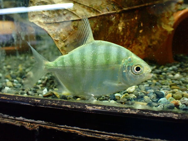 マットグロッソ州のどこかという詳しい産地は確認できていませんが、テレスピレスからくる15~16万するあの超高級なイエローゼブラパクーと同じタイプだと思います。テレスピレスもマットグロッソ州ですからね、同じタイプであっても不思議ではありません。ただしあの高いのと今回の安いのは別の問屋さんが輸入してますし、詳細な採集地の比較ができませんので絶対に同じタイプという約束はできませんので悪しからず・・・。体色は黄色っぽくて体側にはバンド状の幼魚班が確認できますのでまず間違いないとは思いますけどね。普通ならこの倍以上しますので今回のは超お買い得ですよ!このサイズ1匹のみの入荷です!早い者勝ち!!左上の画像です。