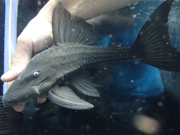 今回超超大特価!入荷は2匹です!サイズも大きくて存在感あります!激安につき早い者勝ち!!上段、中段の画像です。それぞれ2つの画像は同一個体です。マグダレナ産なので昔のタイプ(Panaque cochliodon)になると思いますが、どちらの個体もロングスナウトな顔に低めの体高でこの種の特徴がよく出てると思います!上段の個体は体色も真っ黒でより特徴的ですね!追記:上段の画像の個体は売り切れました。