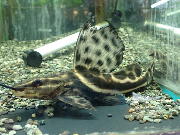 今となっては超激レアなイエローセルフィンです。ここ数年まとまった輸入はなく忘れた頃にポツポツと少数が輸入される程度になっていましたが、今年はバンピラやドラド、レオパードピライーバ等のペルー産ナマズも全く輸入されないような状況だし、ゼブラも少しは来てますが来てるのはコロンビア産やブラジル産でペルー産は全く来てません・・・。そんな中で激レアなイエローセルフィンが輸入されたと聞いてすぐに仕入れました!珍しいナマズだしこんな状況だから値段はちょっと高い気もしますが輸入されたのはこの1匹のみなのでまぁ仕方ないかと。でも仕入れ値を考えるとこれでも特価なんです・・・。今では幻のナマズになりつつある魚。ここ数年の輸入状況や今のペルー産ナマズの流通状況を考えても今後コンスタントに輸入されるようになるということはまずないと思います。数年後にはピラムターバみたいに本当に幻のナマズになっちゃいそうですので、今のうち、いるうちににどうぞ!上段の画像です。2つの画像は同一個体です。