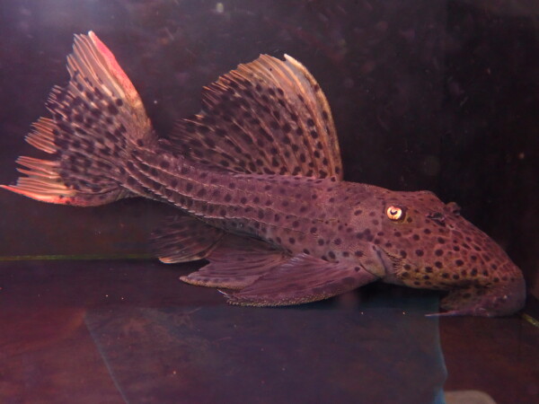 謎のトリム入荷しました。現地からのインボイスはL25sp、つまりウルトラスカーレットトリムspということになるんですが、本来spは属名の後に付けるのが正解なのでPseudacanthicus sp と表記しました。パッと見は確かにウルトラスカーレットに似てるので現地のシッパーがウルトラスカーレットトリムspと付けたくなるのも分かる気がしますが、体型はオレンジフィンレオパードトリムみたいな感じでウルスカよりも明らかに太短く詰まった感じ。体側の模様もスポットがまばらに入り明らかにウルスカとは別の魚です。それにウルスカとは産地が全然違います。ウルスカはシングー水系からしか来ませんが、今回はタパジョス河下流のサンタレンから来ました。未記載種なのかハイブリッドなのかは今のところ不明ですが、この産地からこんなトリムは今まで来たことが無いと思います!入荷は1匹のみ!激レアなニュートリムですのでマニアの方はお見逃しなく!!上段の画像です。2つの画像は同一個体です。