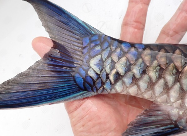 ハンプバックマハシールとして入荷しましたが、それ程背中は盛り上がってないですね・・・。でもこのヒレの色は強烈すぎます!こんな鮮やかな発色は初めて見ました!種類は同定できていませんが個人的にはこれが本物のクードリーなのでは?と思っています。本来クードリーはヒレが真っ青になるやや丸顔の種類です(だと思います)。最近クードリーのインボイスで輸入されている小さいのはそこまでヒレ青くないし顔も結構尖っていますよね。なのであれは前からクードリーじゃないんじゃないかと思っていたりしてまして、そして今回入荷したこの強烈ブルーフィンなマハシール、これがクードリーのイメージに結構ハマる気がするんですよね。まぁ種類なんて何でもいいんです!この個体を見てもらえればそんなの関係ないんです!画像は一切加工とかしてません!リアルにこの色です!実物見たらシビれますよ!!画像は全て同一個体です。