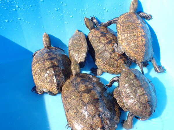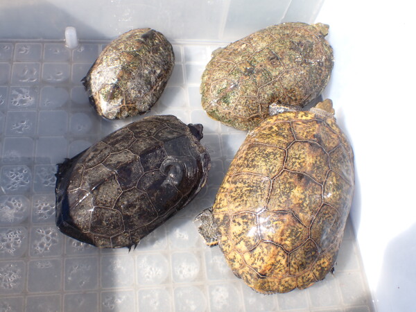 ブリーダーさんから入荷したイシガメのブリーディングコロニーとおまけのオスの黒化したクサガメ1匹です。イシガメは毎年繁殖しているそうです。なのでたぶん交尾済みだと思いますのでメスだけ買っても殖えると思いますよ!難有りの個体は足が欠けていたりひどい甲ズレだったりです。キレイな個体はオスが3匹とメスが4匹で、難有りはオスが2匹とメスが1匹です。即ブリOKのアダルト個体が大特価です!早い者勝ちです!左の画像がキレイな個体たちで右の画像が難有り個体とクサガメです。