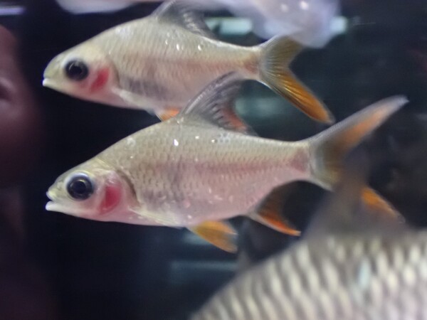透明鱗のレッドフィンバルブです。これキモくて好き。大きく育ててアロワナの混泳魚とかにもオススメです!中段右の画像です。